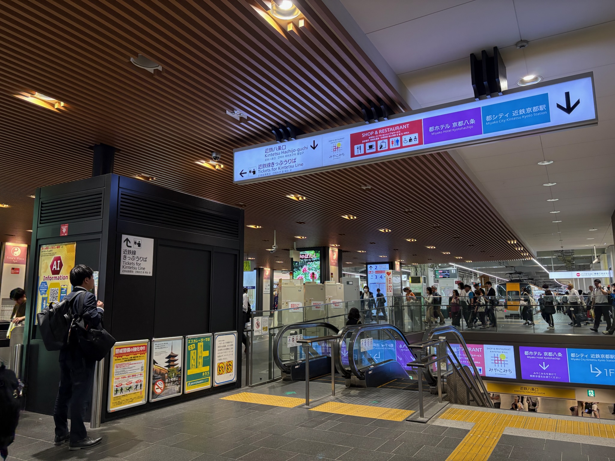 近鉄京都駅からは、改札横の階段を下るとすぐです。
